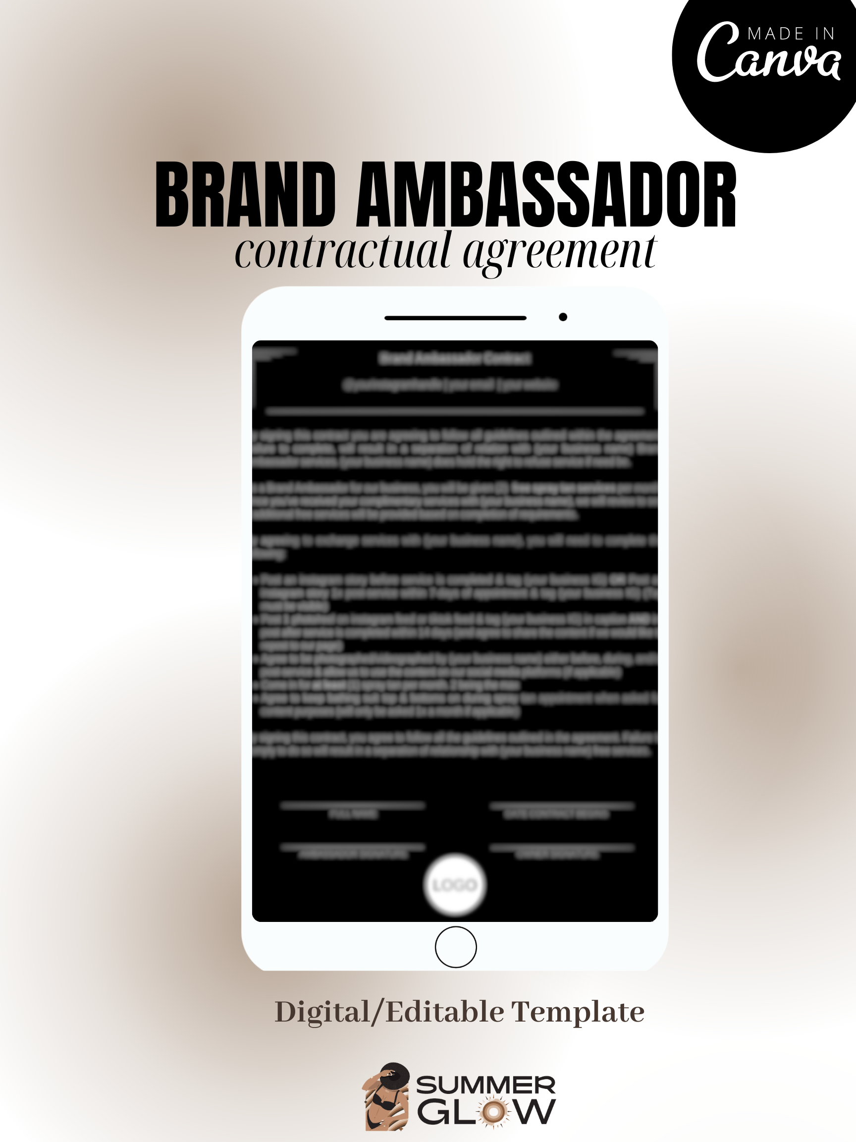 Use this fully editable and downloadable brand ambassador contract template for any beauty business type to cater to and create specific guidelines and requirements for potential brand ambassadors and models.
