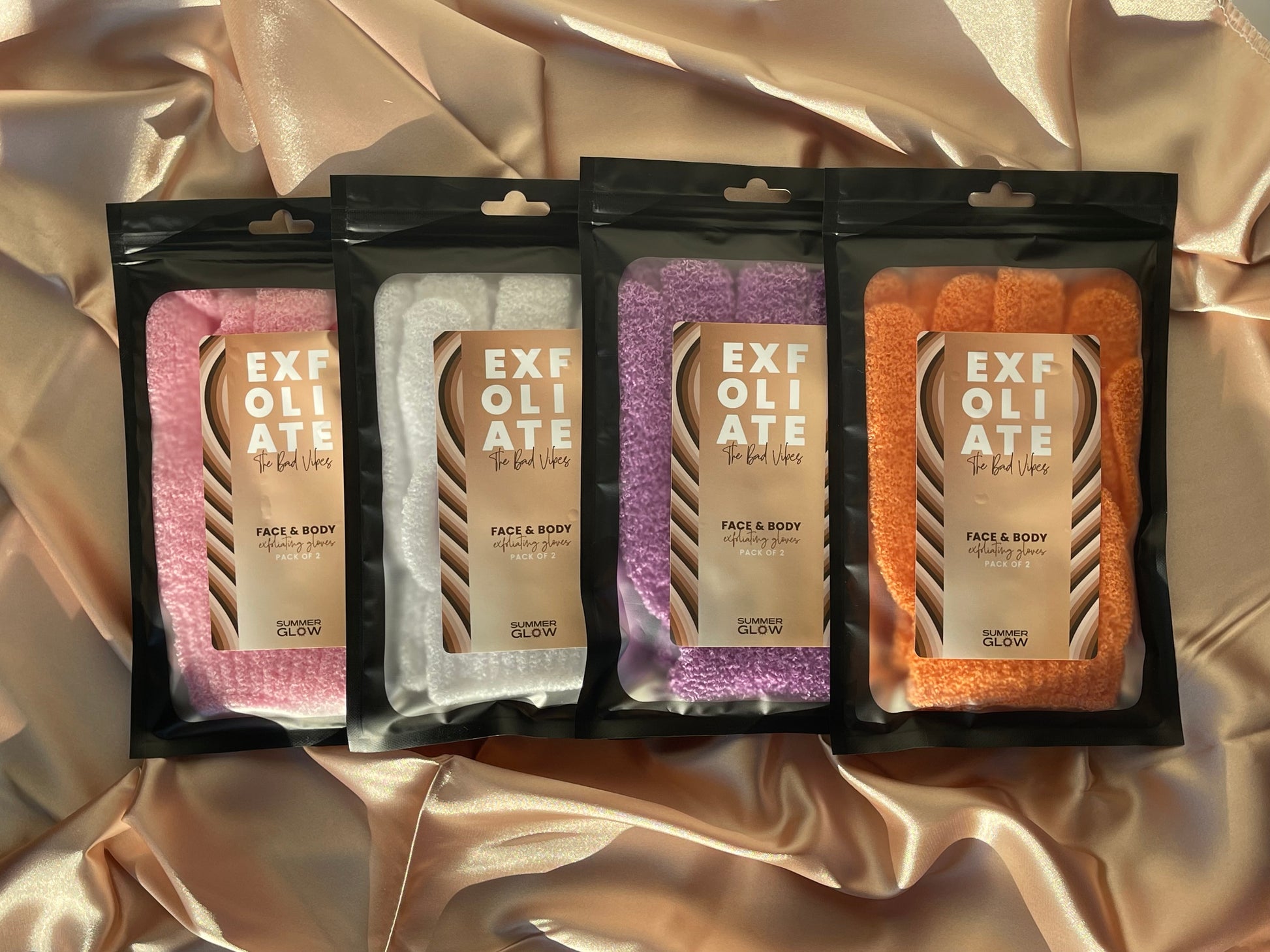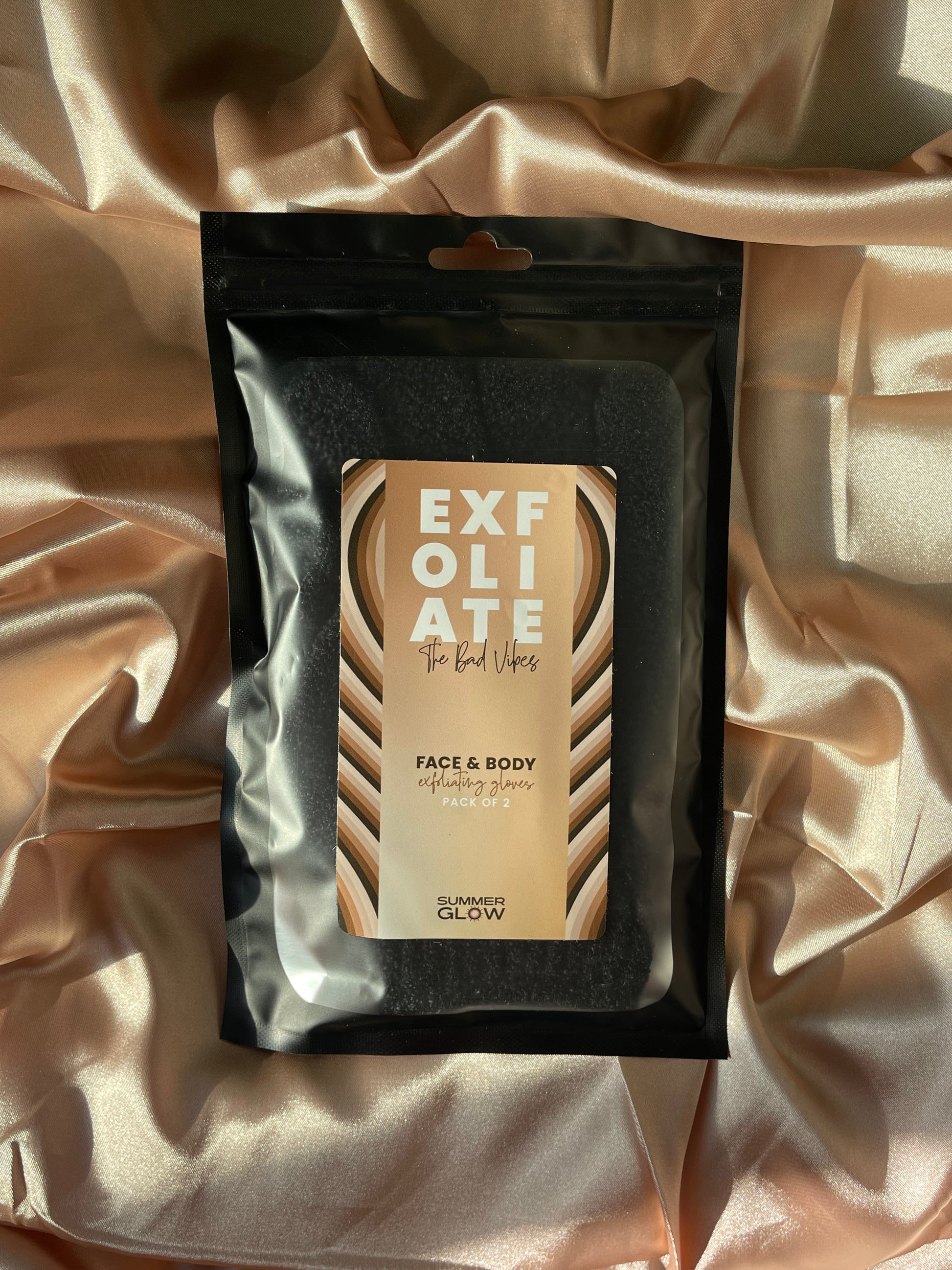 Exfoliate the bad vibes away with these face & body exfoliating gloves. Use these gloves to buff away dead skin cells and gently exfoliate your skin to prep for your upcoming sunless tan, or simply to allow new skin cell regrowth and reveal and restore your skins healthy glow.